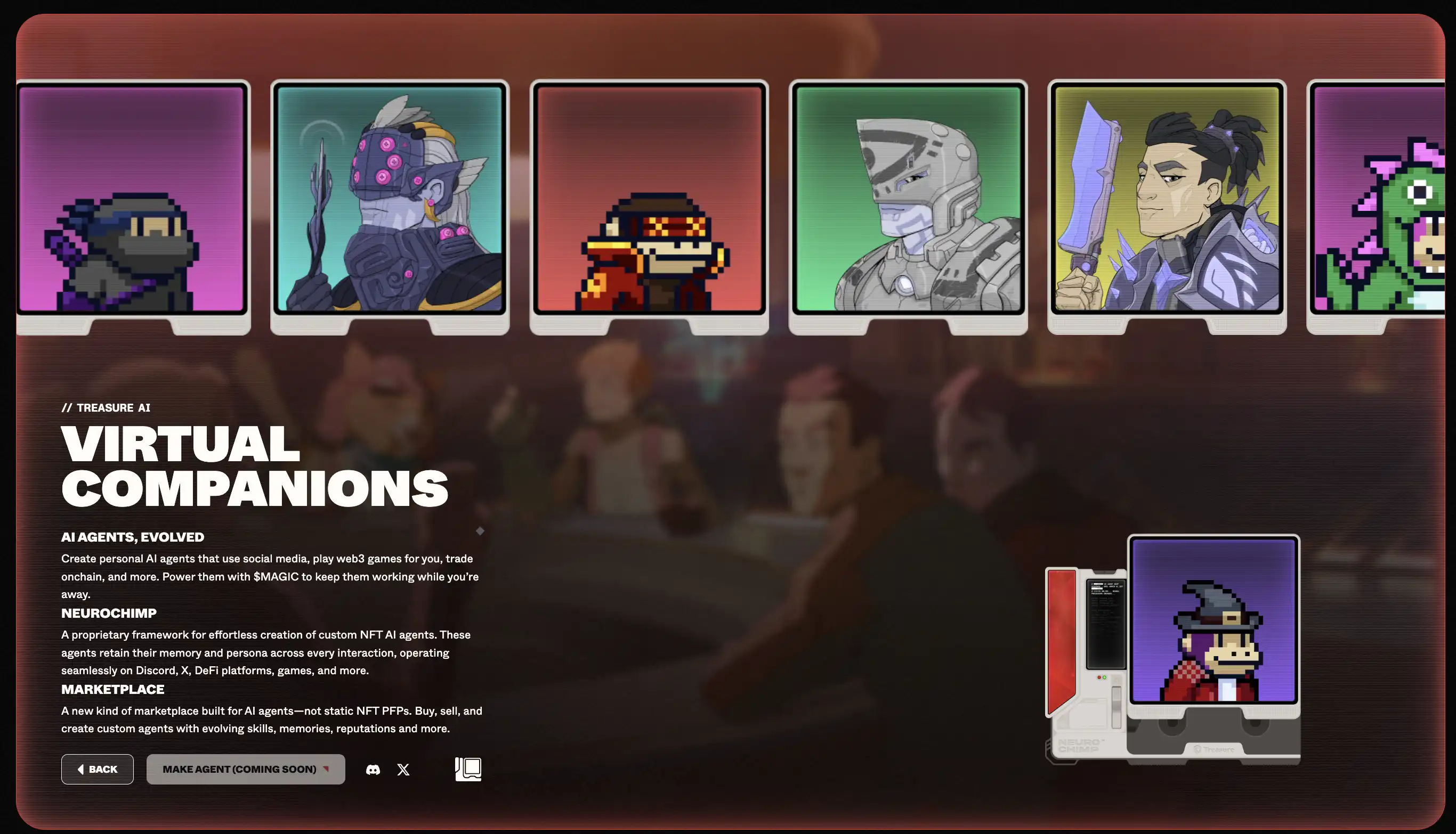 前段时间 Treasure 刚刚宣布将把项目的重心从游戏链以及游戏的运营转移到 AI+NFT 上,SMOL 在今天便给出了第一份答卷,Smol 宣布发布「Virtual Companions」功能,能够将 NFT 变成 AI Agent 并且这些 Agent 将能够使用社交媒体并自己玩 GameFi 或 DeFi,并且做了个供 AI Agent 买卖技能、记忆等资料信息的市场。