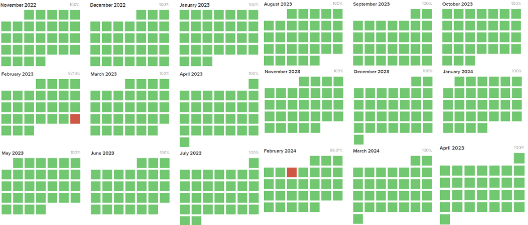 让我们先来仔细审视一下过往的故障及其根本原因,2021 年和 2022 年的正常运行时间图表实在糟糕透顶: