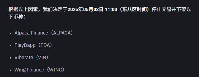 币安作为全球最大的加密货币交易所,其每一次下架决定都如同在市场中投下一枚重磅炸弹。ALPACA此次被列入下架名单并不完全令人意外。早在4月10日至16日的币安社区投票中,ALPACA就以6.3%的“下架票”位列高风险代币名单第六位。这次投票,像是给市场提前打了一剂预防针,暗示ALPACA可能面临流动性不足或社区支持薄弱的问题。