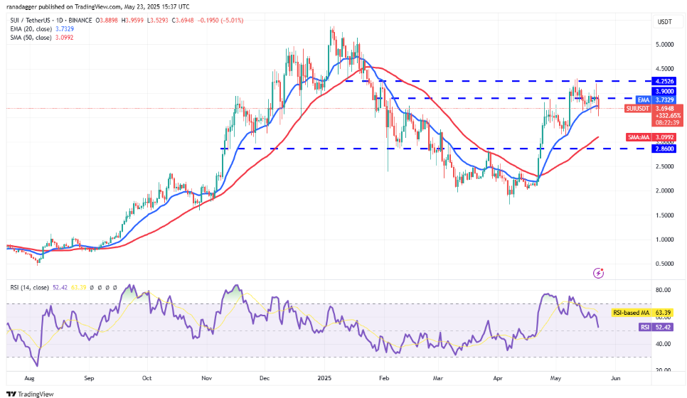 5月22日买家未能推动Sui突破4.25美元上方阻力位,表明空头正在强势防守该水平。